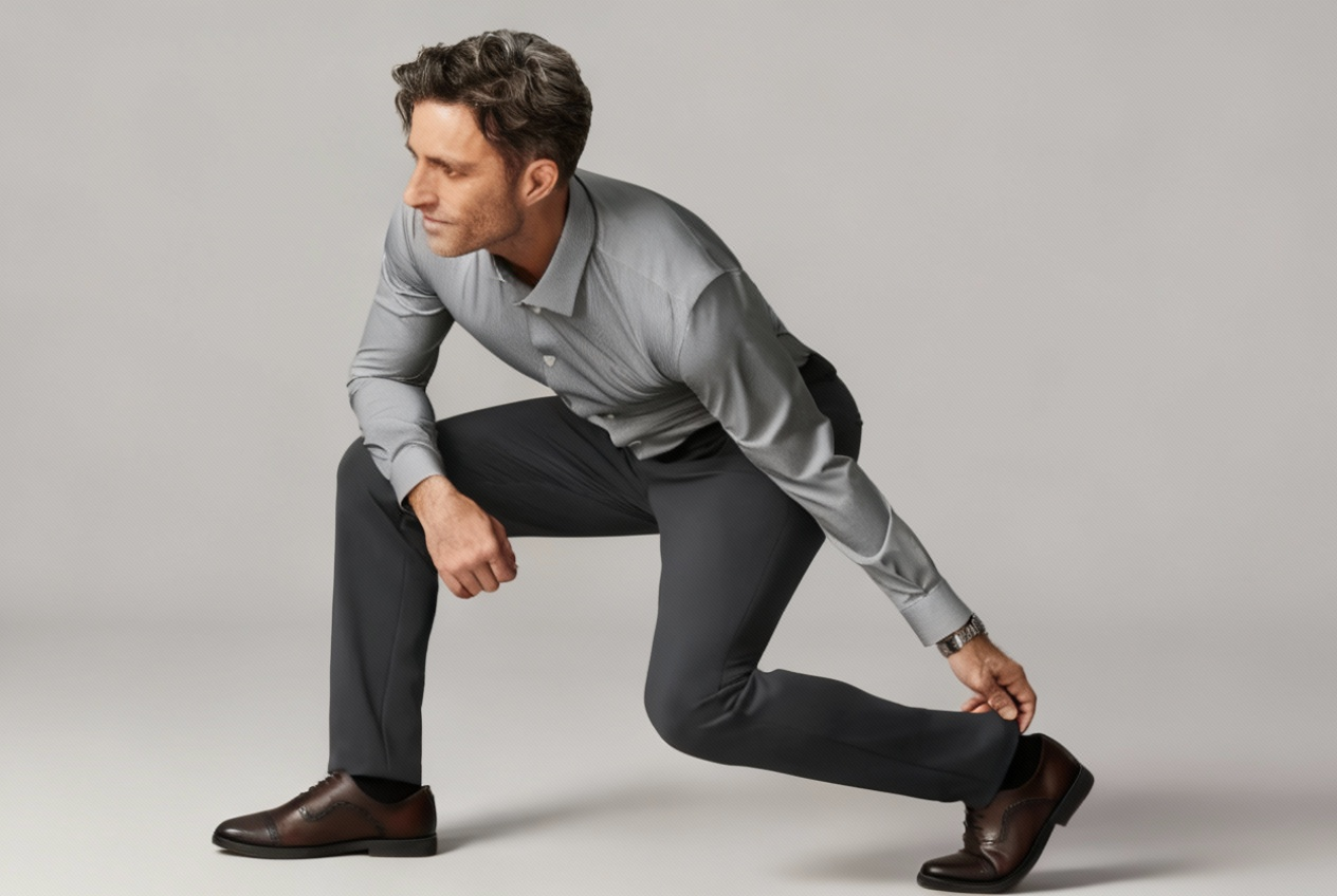Solution: Advanced stretch + breathable fabrics for all-day comfort.