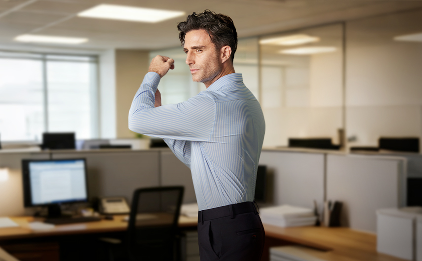Solution: Advanced stretch + breathable fabrics for all-day comfort.