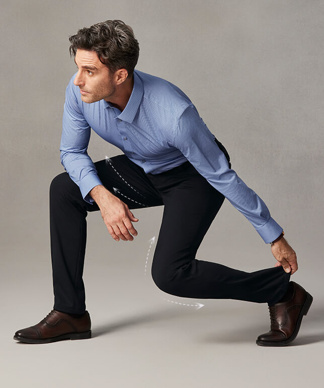 Solution: Advanced stretch + breathable fabrics for all-day comfort.